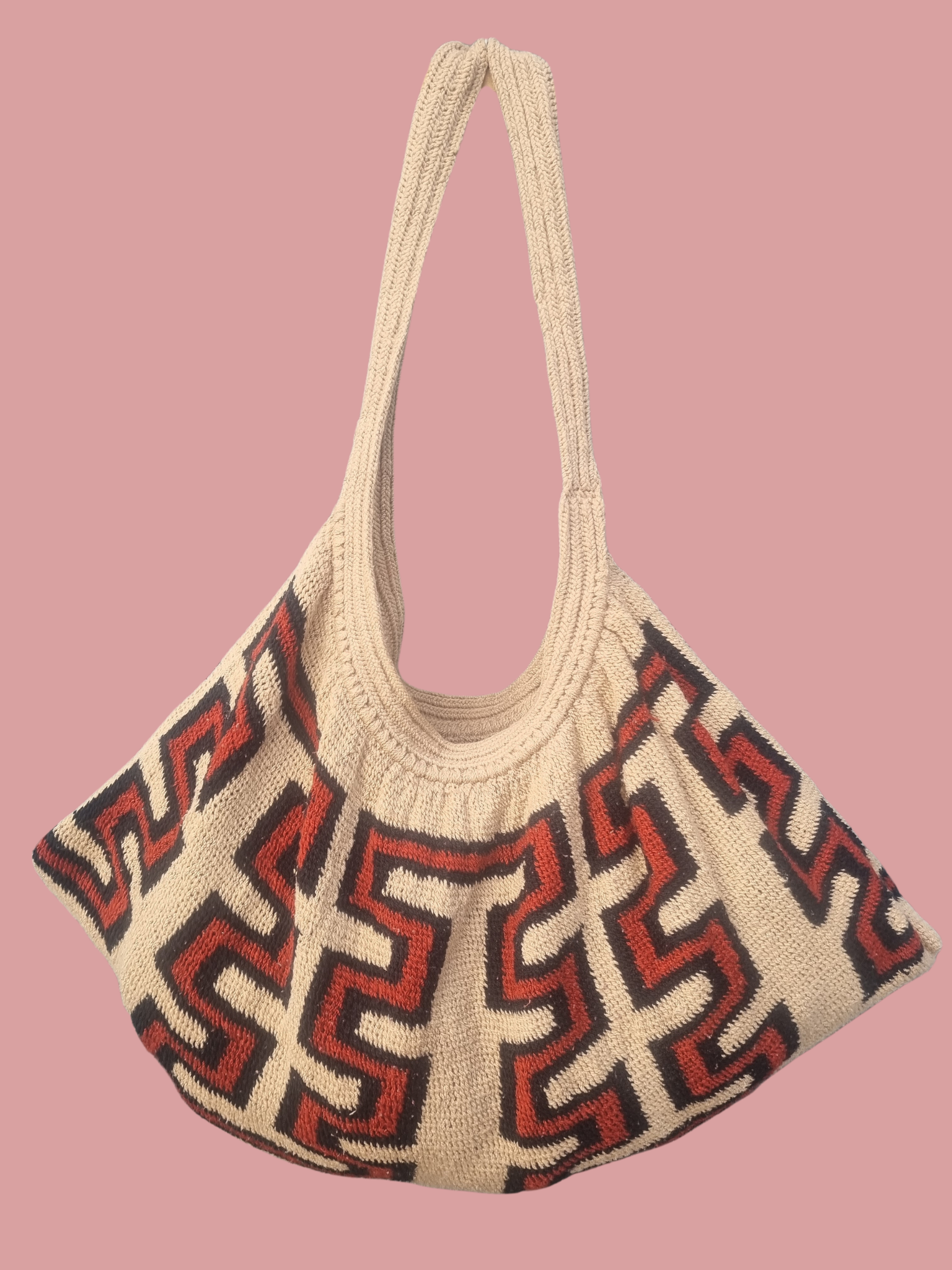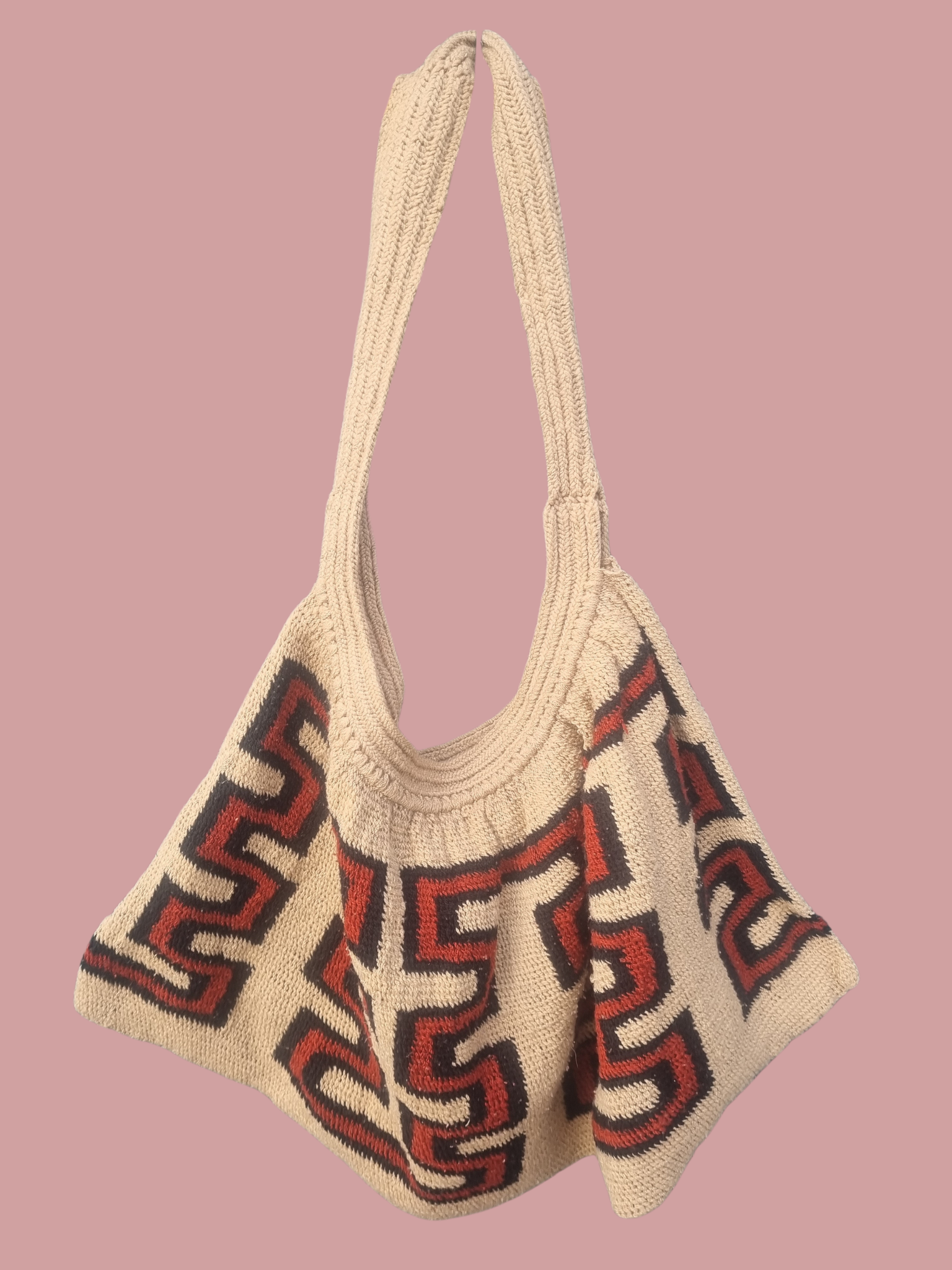 Keep your bilum vibrant by spot cleaning with mild soap and water, or gently hand washing in lukewarm water. If machine washing, use a mesh bag on a cold, delicate cycle, separate from rough fabrics. After washing, reshape and lay flat to dry. Never wring, twist, or hang. Store in a cool, dry place away from direct sunlight and sharp objects to protect its colour and weave.