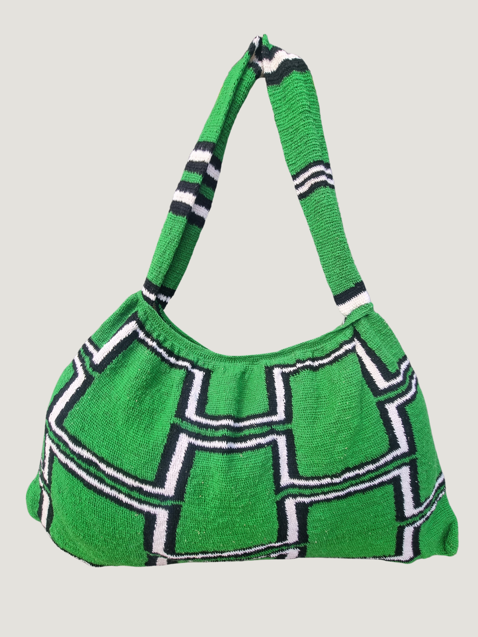 Keep your bilum vibrant by spot cleaning with mild soap and water, or gently hand washing in lukewarm water. If machine washing, use a mesh bag on a cold, delicate cycle, separate from rough fabrics. After washing, reshape and lay flat to dry. Never wring, twist, or hang. Store in a cool, dry place away from direct sunlight and sharp objects to protect its colour and weave.