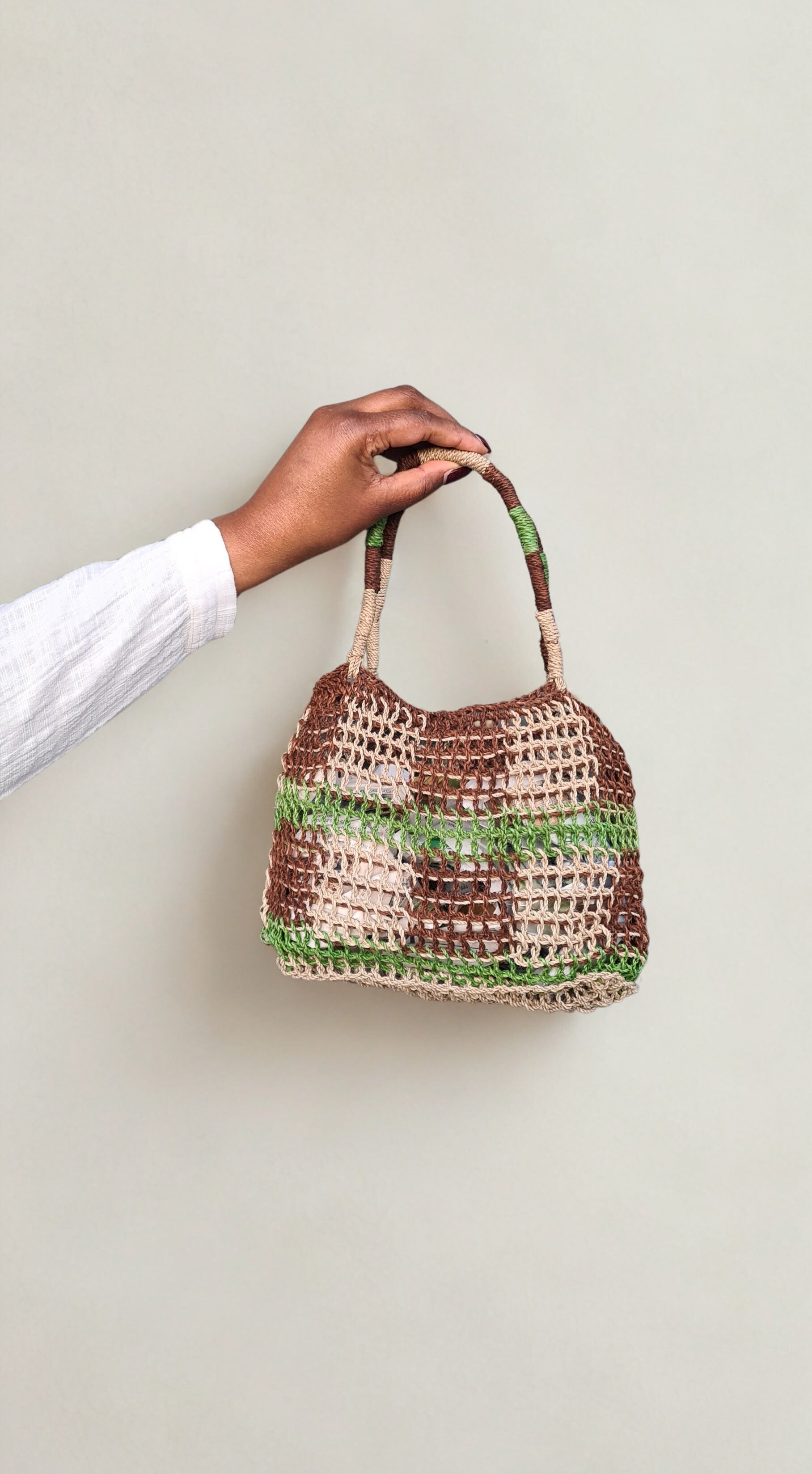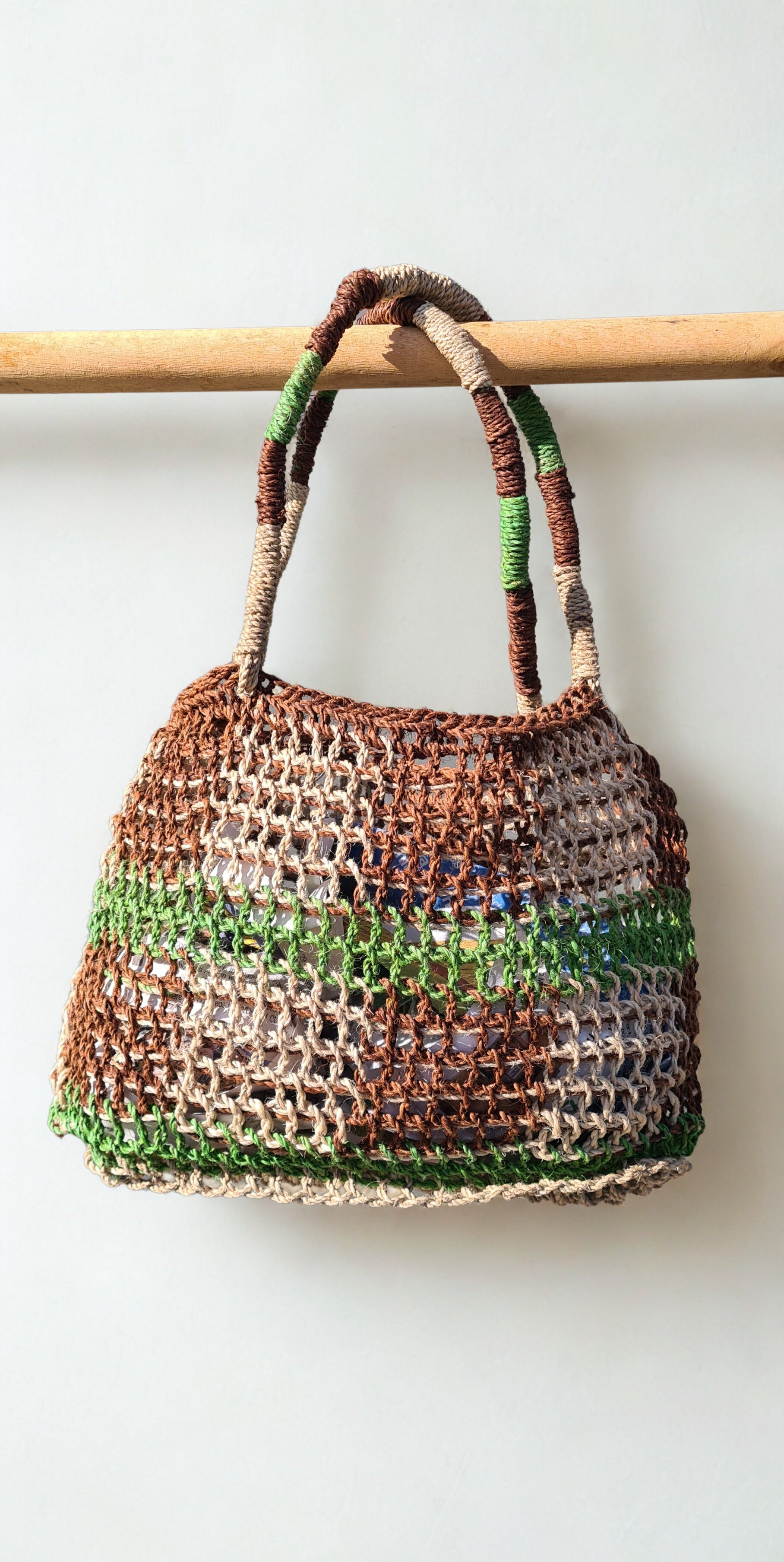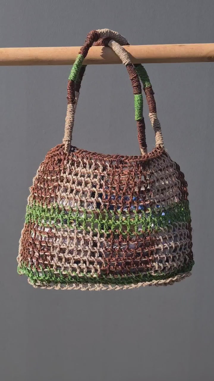 Each bilum is one-of-a-kind and handcrafted using natural materials. To keep it looking its best, avoid prolonged exposure to direct sunlight and moisture, which may cause fading or wear.