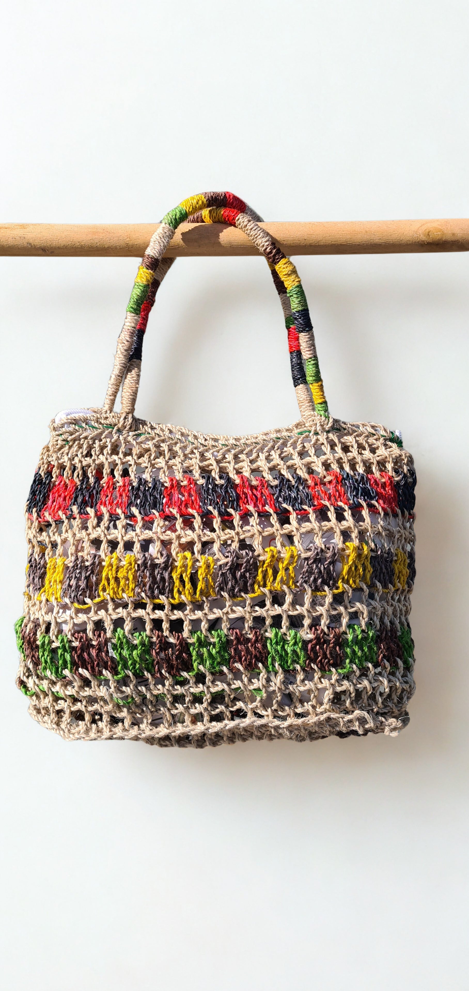 Each bilum is one-of-a-kind and handcrafted using natural materials. To keep it looking its best, avoid prolonged exposure to direct sunlight and moisture, which may cause fading or wear.