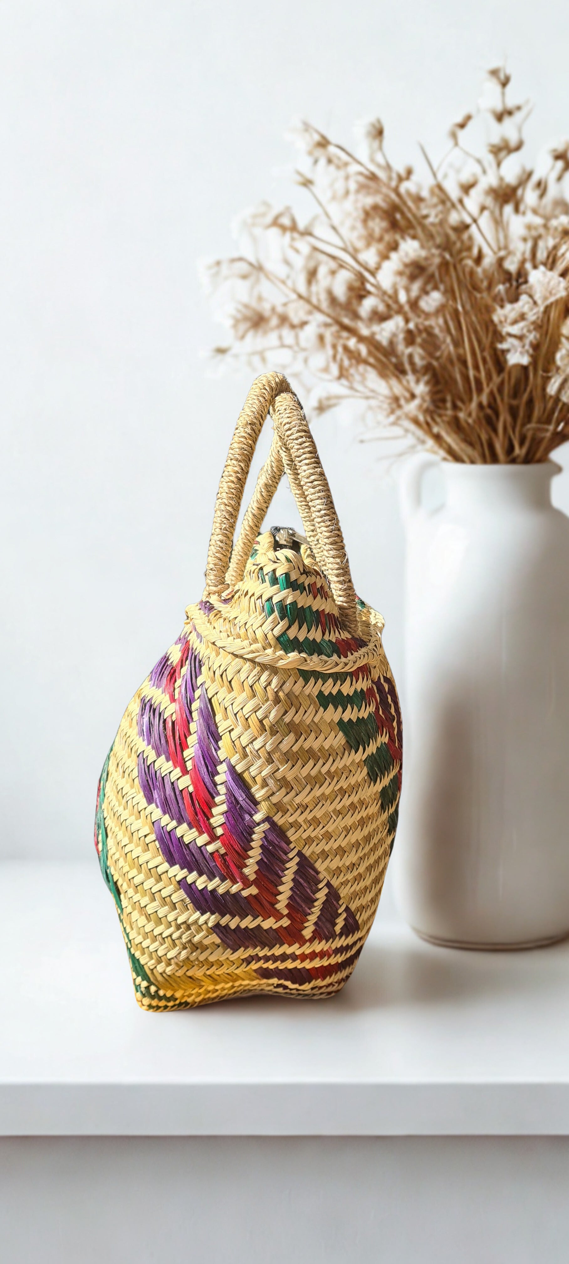 Each basket is one-of-a-kind and handcrafted using natural materials. To keep it looking its best, avoid prolonged exposure to direct sunlight and moisture, which may cause fading or wear. For a gentle refresh, give it a light shake to remove dust or debris.