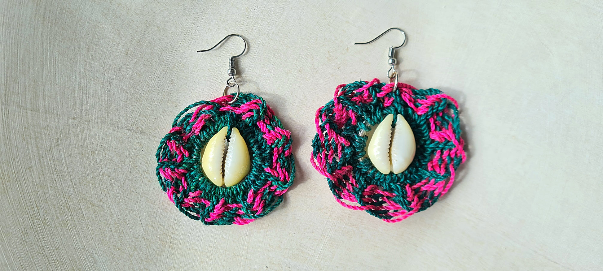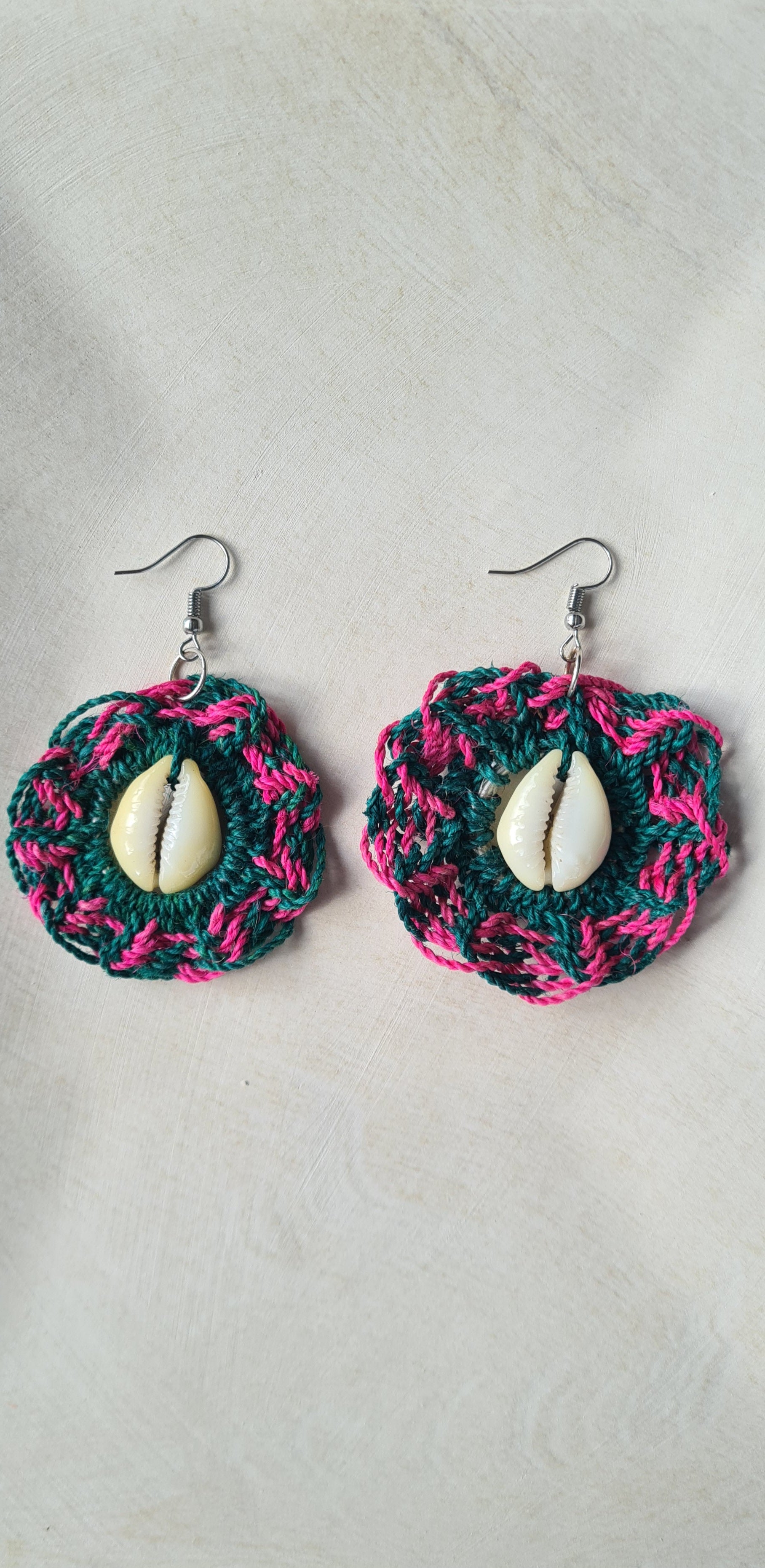Bring a touch of Sepik heritage to your style with these handwoven shell earrings. Crafted using traditional techniques passed down through generations, each pair is made from natural fibres sourced from native trees such as Rumia, Gombia, and Mangas. The fibres are carefully stripped, dried, twisted and woven in the same intricate method used to create Kambot bilum bags, giving these earrings both strength and beauty. Finished with a central cowrie shell — a timeless symbol of beauty and connection to the sea — these earrings are lightweight, unique, and perfect for adding a touch of coastal charm to any outfit.