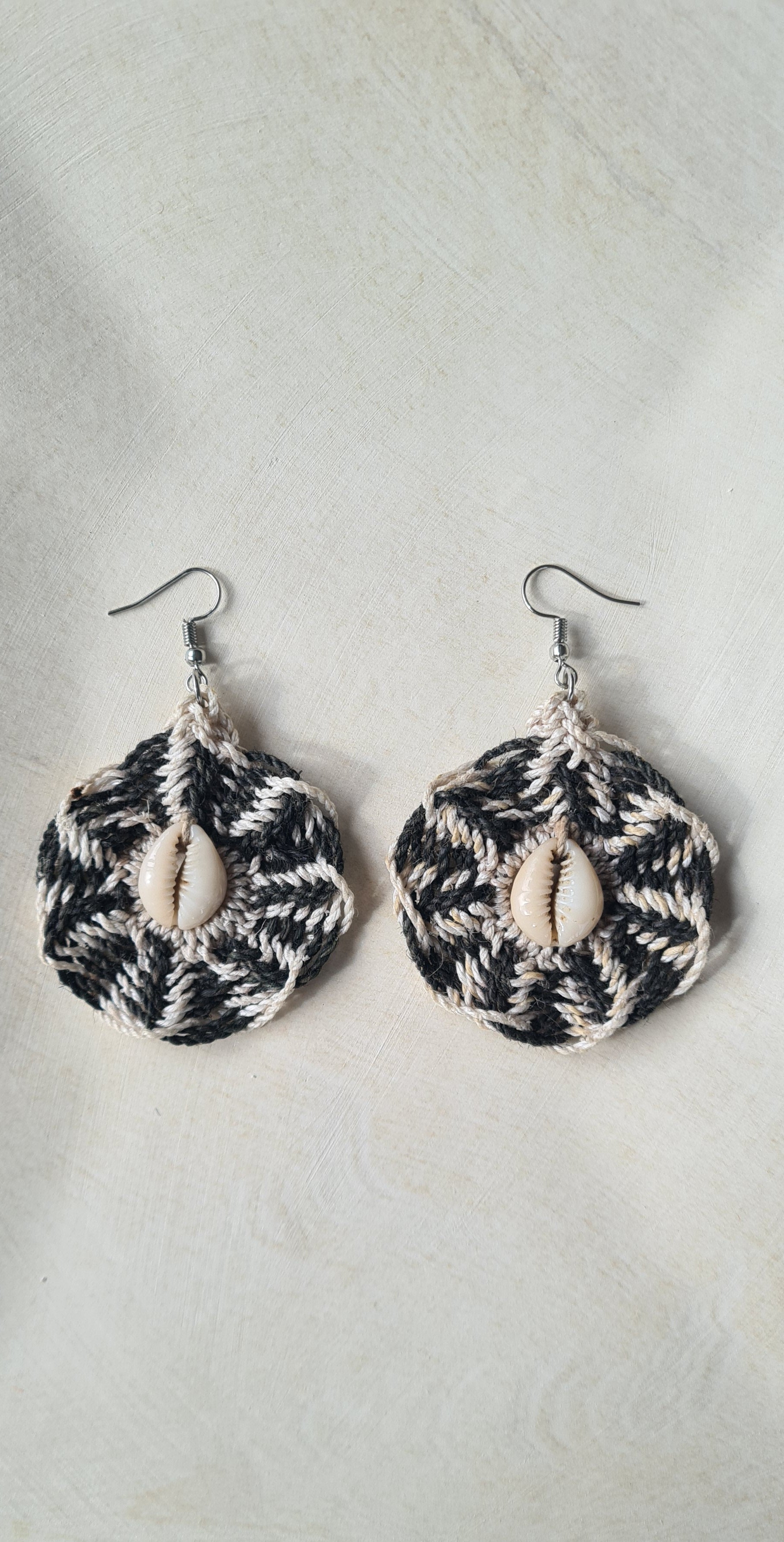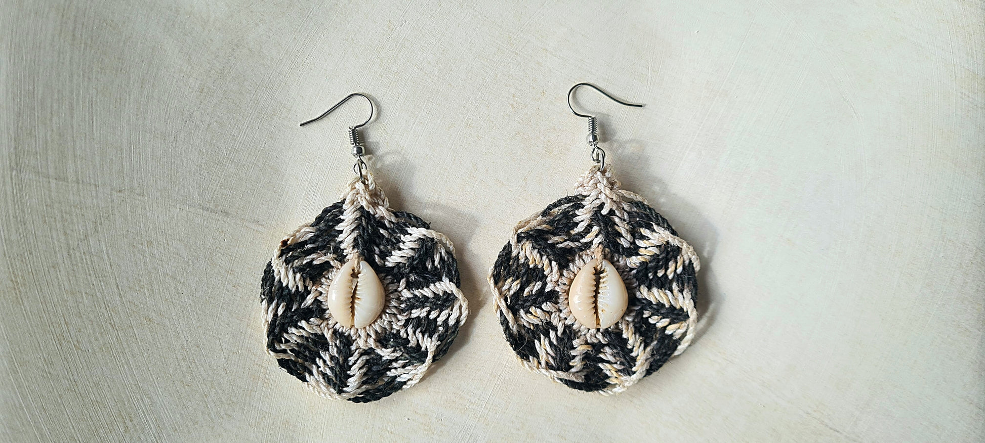 Bring a touch of Sepik heritage to your style with these handwoven shell earrings. Crafted using traditional techniques passed down through generations, each pair is made from natural fibres sourced from native trees such as Rumia, Gombia, and Mangas. The fibres are carefully stripped, dried, twisted and woven in the same intricate method used to create Kambot bilum bags, giving these earrings both strength and beauty. Finished with a central cowrie shell — a timeless symbol of beauty and connection to the sea — these earrings are lightweight, unique, and perfect for adding a touch of coastal charm to any outfit.
